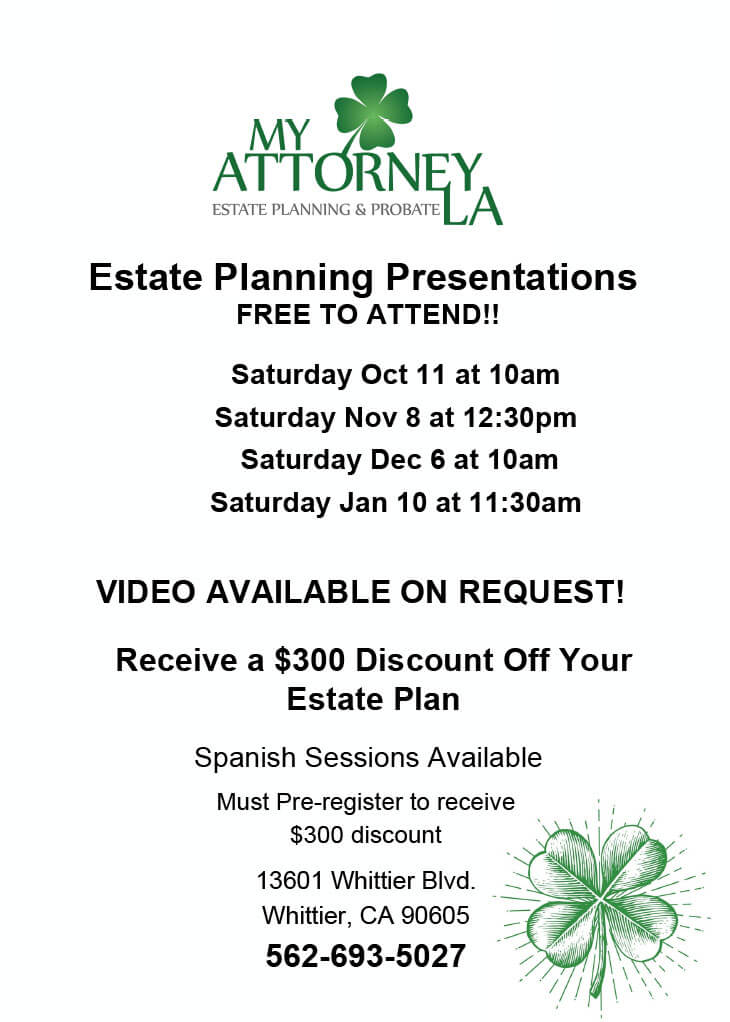 At My Attorney LA, we take the time to get to know our clients personally. We have provided estate planning, living trusts, probate, and trust administration for over 14 years. We also offer group information meetings to provide general information and answer your questions. This is followed by a meeting with an attorney who will guide you through designing the right plan for you and your family. There are no impersonal questionnaires, and licensed attorneys, not paralegals, draft the documents we prepare. Finally, we will review every page of your documents with you so that you can verify they are correct and you have a proper understanding of everything you sign.